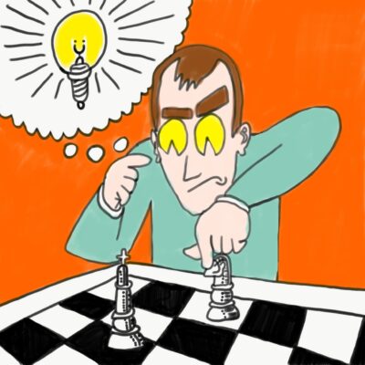 Self-portrait of the author playing chess